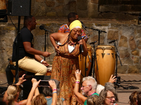 | Voita Dies ist der Künstlername von Marie-Claude Lambert-Philéas und ihrer Musikgruppe, als Hommage an Marie-Claudes Mutter. Ihre Mutter aus Madagaskar wuchs in einer Musikerfamilie auf, die "Maloya" von Generation zu Generation weitergab. Marie-Claude Lambert, selbst aus dem französischen Überseedepartement Réunion, begann ihre musikalische Karriere mit verschiedenen Gruppen. So begleitete sie beispielsweise ihren Vater Gramoun Lélé oft auf der Bühne und sang auch im Chor der Gruppe Didi, die die musikalischen Projekte ihres Bruders Urbain Philéas (Groove Lélé) um den Gesang bereicherte. Sie hätte noch lange für andere singen können, besonders in dieser kraftvollen Umgebung, aber Marie-Claude entschied sich, Musik zu schreiben und später ihre eigene Gruppe zu gründen; VOTIA! | Voita Wieder umgibt sie sich auf der Bühne mit Familienmitgliedern. Ihr Mann, Fabrice Lambert, und auch ihre Kinder stehen oft zusammen mit Marie-Claude auf der Bühne. Darüber hinaus tritt sie mit vielen weiteren talentierten Musikern auf. Der Schmerz, den sie durch den Verlust ihrer Eltern und dann ihrer Tochter in den 2000er Jahren erlitten hat, spiegelt sich in einigen ihrer Texte wider, die nur durch die Musik beruhigt wurden. Getragen von ihrer sanften und charismatischen Stimme sind die Texte von Marie-Claude intim und handeln von Liebe, Trauer und geliebten Menschen sowie von den Verstorbenen. Die Sängerin vermittelt Gefühle durch ihren Maloya, mit Blues und indischen und afrikanischen musikalischen Einflüssen. Im November 2016 wurde das erste Album der Gruppe, Ansoumak, veröffentlicht, das dem Publikum die Möglichkeit gibt, eine einzigartige Welt zu entdecken, die vom Rhythmus der Maloya und der sensiblen Poesie und der lebendigen Persönlichkeit von Marie-Claude transzendiert wird. All dies kann am Sonntag, den 5. Juli, in Hertme live bewundert werden! |