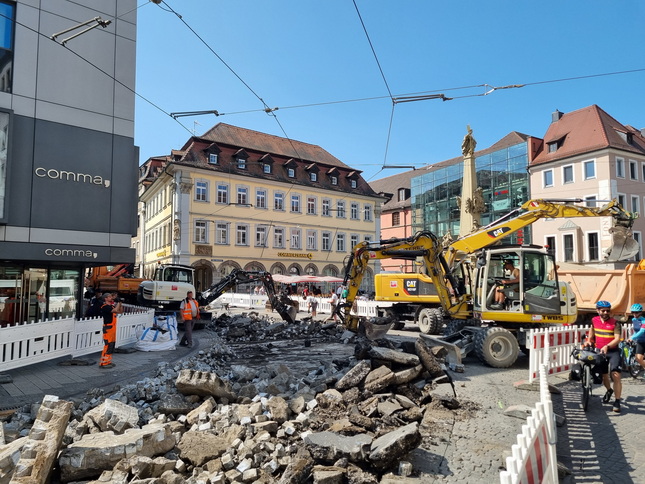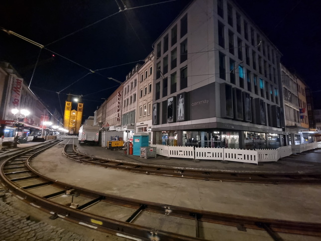 Schiene der tram erneuert amn Pfingsten Blick von der Marienfestung