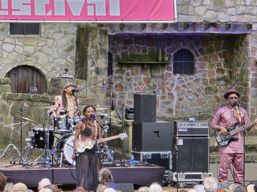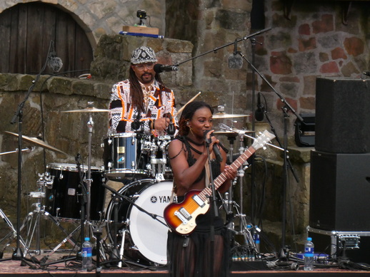 Pamela Badjogo - Gabun Pamela Badjogo wuchs in Libreville, Gabun, auf. Sie studiert Biologie und tritt auch als Backgroundsängerin auf. Im Jahr 2005 erhält sie ein Stipendium für ihr Studienprojekt in Mali. Sie zieht nach Bamako, um ihr Biologiestudium fortzusetzen. In Bamako bietet sie ihre Dienste als Chorsängerin an und arbeitet im Studio Bogolan. Sie wird von Cheick Tidiane Seck, dem ehemaligen Keyboarder von "Les Ambassadeurs", unter die Fittiche genommen. Sie singt für Künstler wie Salif Keita, Oumou Sangaré und viele andere. 2015 startet sie ihre Solokarriere mit der Single Bô aus ihrem ersten Album "Mes Couleurs". Nach einer Zeit in Gabun zieht sie nach Frankreich und arbeitet an einem Musikprojekt, einer Fusion aus Jazz und Weltmusik. Nach ihrem zweiten Album "Kaba" hat sie vor kurzem ihr drittes Album Yieh veröffentlicht. Ihr Stil ist ein lebendiger Cocktail aus Afro-Pop, Highlife im Bantu-Stil und Afrobeat. Pamela Badjogo, Gitarre, Gesang Elisée Sangare, Bassgitarre, Hintergrundgesang Shan Lotchi Ludmann, Schlagzeug, Hintergrundgesang Grégory Emonet, Gitarre, Hintergrundgesang |