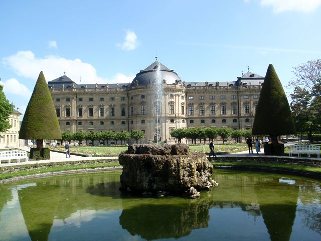 Das erst als Jagdhaus, dann als Sommerresidenz genutzte Schloß im Hofgarten wurde 1680/82 unter Fürstbischof von Dernbach errichtet und 1749/53 durch Balthasar Neumann erweitert. Im Inneren führt eine von Balthasar Neumann geschaffene Treppe in den ersten Stock zu den Wohnräumen, die weniger repräsentativen Zwecken als vielmehr dem privaten Aufenthalt dienten. Die Ausstattung der fürstbischöflichen Wohnräume und der Toscanaräume des frühen 19. Jahrhunderts ist erhalten. |