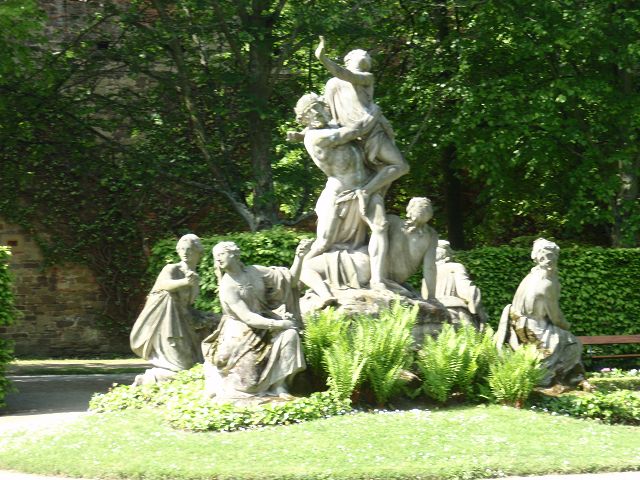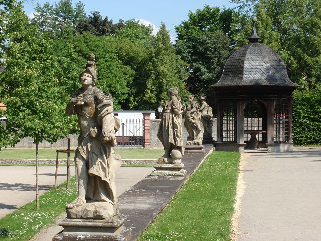 Veitshöchheim. In Veitshöchheim Rokokogarten mit Plastiken von Ferdinand Tietz,
