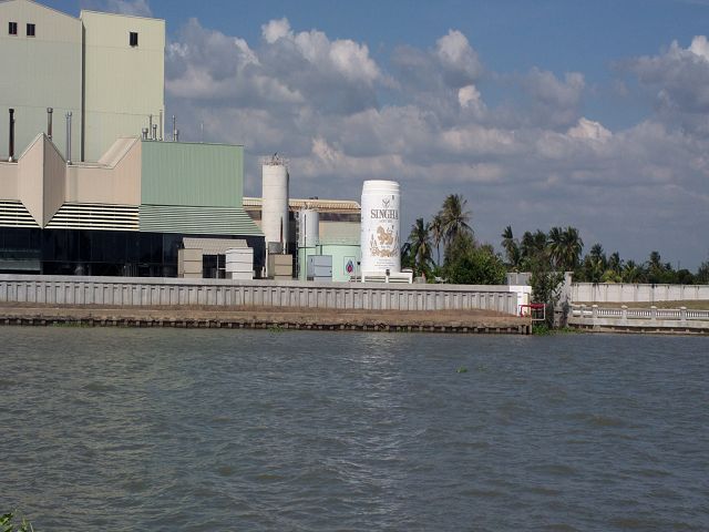 | Ayutthaya Singha Brewery Singha Bier Brauerei | mit dem Böötchen auf dem chao Praya |