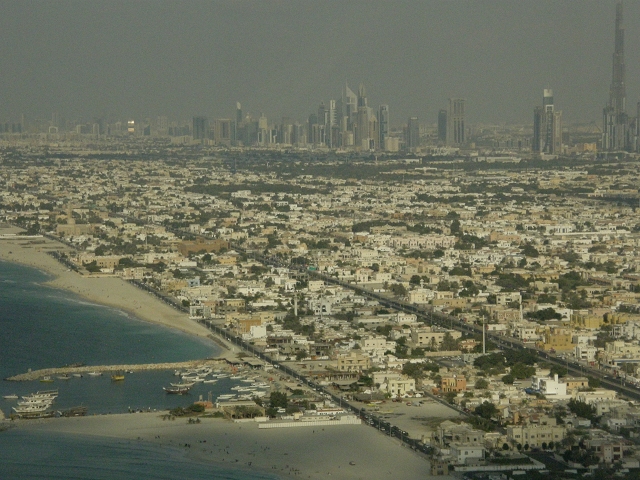 | skyview restaurant View | Blick auf Dubai aus dem 27 Stock auf die U Boot station | |