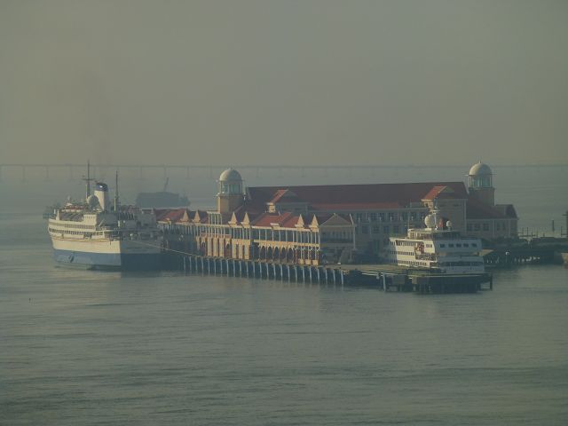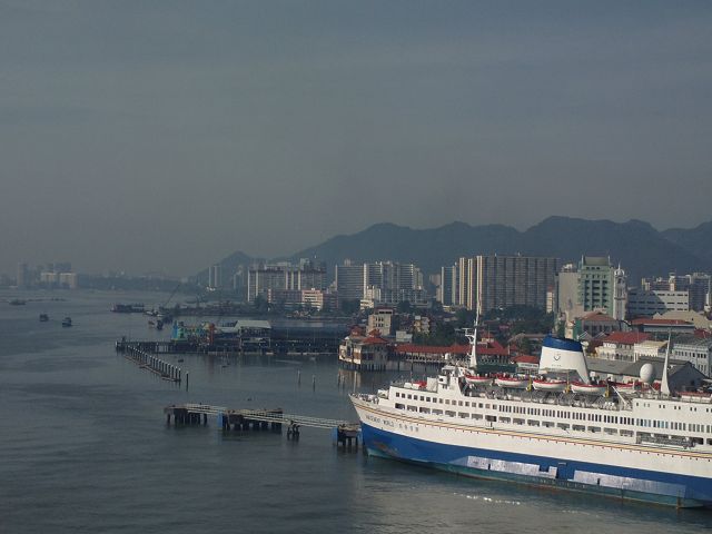 | Penang | Penang vorne Fähre hinter Penang Bridge Penang Bridge Jambatan Pulau Pinang 13,5 km lang 1985 fertiggestellt |