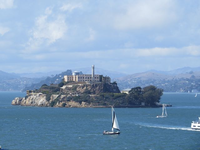 Francisco Bay. Sie segeln am berühmten Alcatraz Island vorbei und unter
