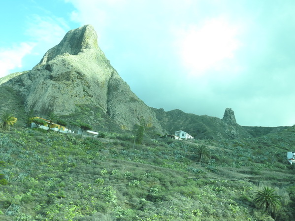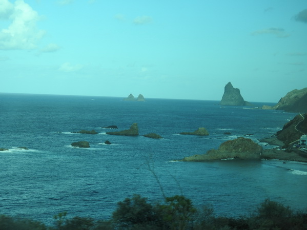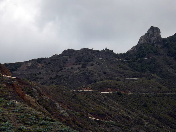 | anagagebirge Serpentinen vom Paß aus runter Punta del Hidalgo | anagagebirge Loch im Fels |