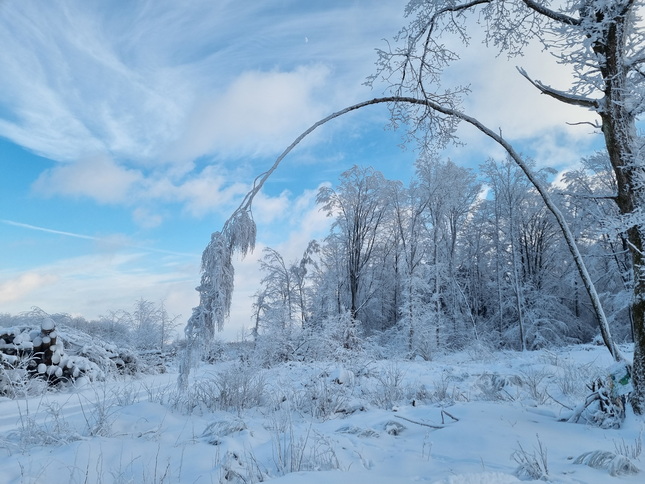 Belmicke  Birke biegt sich vor Schönheit  Ansicht im Winter