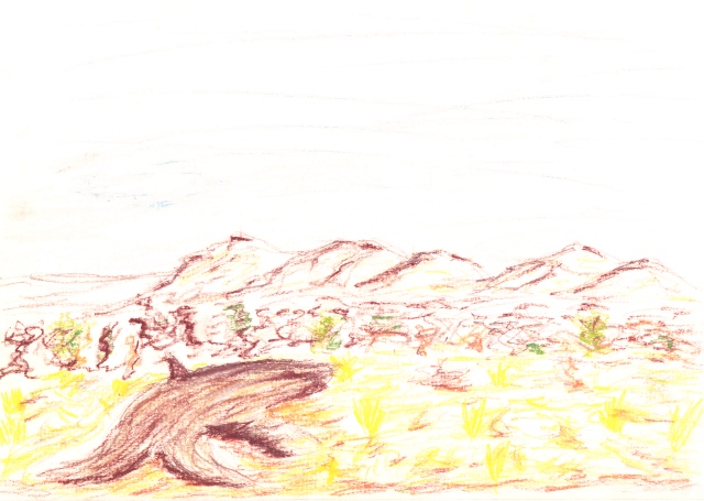 zurück Zimbabwe Caprivi Namibia Blick zu den Bergen von der Kambaku Lodge Zeichnungen Caprivitour 2003