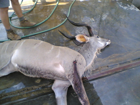 | Kambaku Bogensafari Kudu vor dem Zerwirken Jagderfolg nach der Bogenjagd | Kambaku Safari Lodge Kudu vor dem Zerwirken Jagderfolg nach der Bogenjagd |