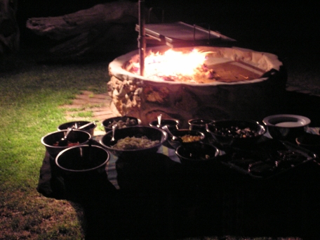 zurück   last picture      next picture  Kambaku Boma Namibia Braai Boma  Dinner is ready