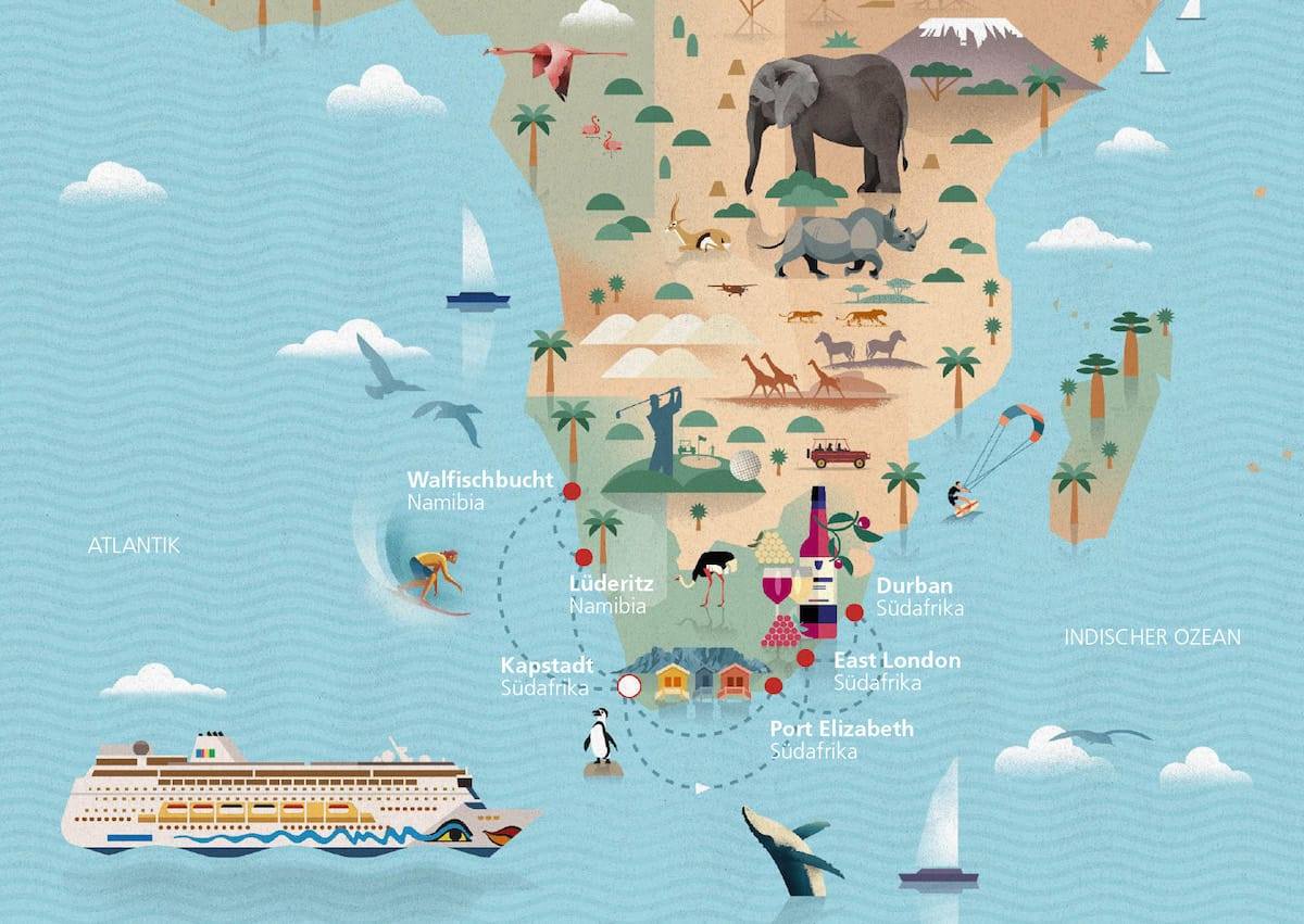 Aida Goes Afrika Bild von Aida.de  ab 23.12.2020 Aida Mira Nach Kapstadt  Das Abenteuer ruft in Südafrika und Namibia: Safari mit Elefanten und Löwen, Geländefahrt durch die unendliche Namib-Wüste,