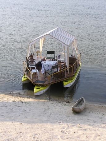 Böötchenfahrt auf dem Okavango   3 Kanus + Holzplattform = Hausboot  Trimara Trikanu