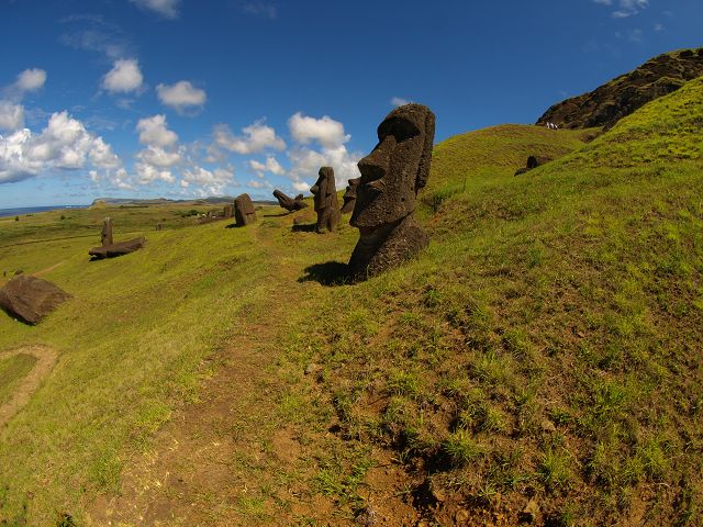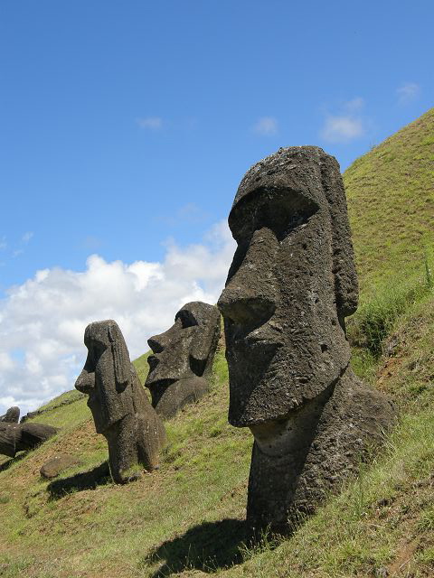 In der Tat, wenn die Beta-Version von dem Felsen und dem Stück des Steins bestimmt wurden, wurde die Front des Moai geschnitzt zu kommen aus dem Berg, war ein Kielboot in den Tuffstein unter der Statue langsam heraus, und hielt es mit dem Erdreich gehauen , Steinen, Seilen, Baumstämmen, wenn nötig, dann, die Moai langsam glitt die Hänge des Vulkans auf der Basis von 1/3 in einen Hohlraum und ermöglicht ihm auf seinen Füßen, ist nur das Schnitzen des Rücken und geschlossenen Hohlraum bis zu seinem Transport Zukunft.