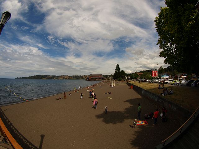 Frutiliar am Lago Llanquihue mit dem Vulkan Osorno Frutiliar am Lago Llanquihue mit dem Vulkan Osorno Frutiliar Konzerthalle