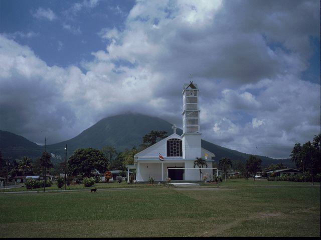 Thermalbad mit heißem Vulkanwasser am Fuße des Arenal  Tabacon-Therme Tabacon Resort & Spa (Heiße Quellen von Tabacón)  Kirche am Arenal