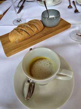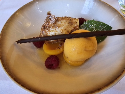 Restaurant Schimmels Menü 1 Topfenknödel mit Brösel und Aprikosnekompott sundowner  auf Nachhauseweg von Restaurant Schimmels