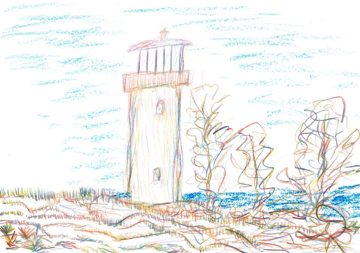 Turm Ligthouse Brick Ziegel Leuchtturm Darßer Ort Ahrenshoop deich + Steilküste Skizze Halbinsel Fischland-Darß-Zingst. |