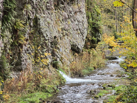 Ohratalsperre mit  Salzmannfelsen und Quelle