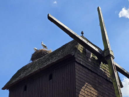 Bockwindmühle aus 1871 Originalmühle aus Ummeln bei Algemissen  mit Stochennest