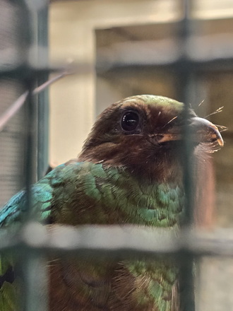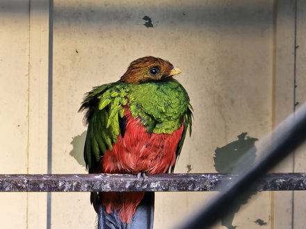 Neugieriger Vogel Goldkopftrogon
