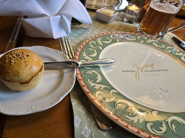 Jagdhaus Glashütte Sitzecke Jagdhaus Glashütte  Vorspeise Stösschen Hövel mit Schmalzbrotecke