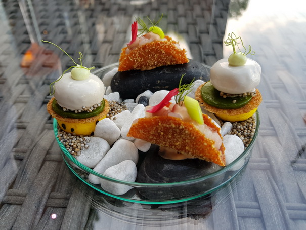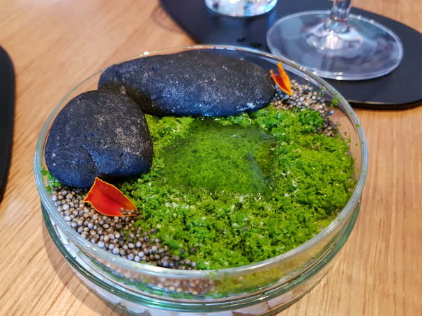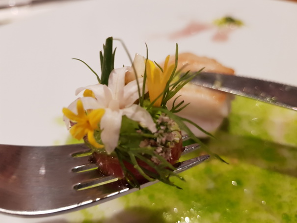 | Halbedel Menü Yellow Fin Tuna mariniert Tartar mit Ingwer Karotte Jacobsmuscheln Steinbutt Kartoffelkruste Morcheln Blumenkohl US Beef 1 Essenz Ravioli Tartar US Beef 2 Filet Krazt + Rüben Rohmilchkäse Rhabarber Rote Beete Matcha tee € 125,- -ohne Käse € 110,-- |