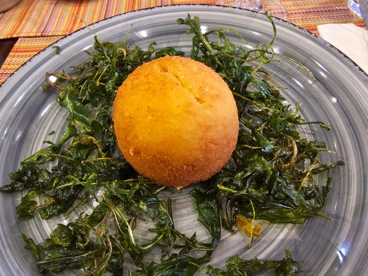 Arrancini  ein Arancino frittiertes + gefülltes Reisbällchen gehört unter anderem zur traditionellen sizilianischen Küche