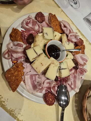 | und dann auf meinem Teller | Pancetta+Käse+ Sizilianische scharfe Wurst |