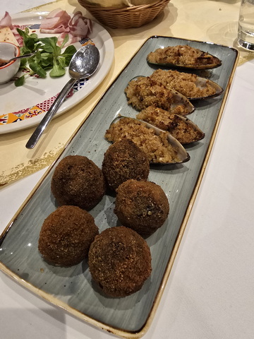 | Arancino al Neo die Sepia und Muscheln Gratiniert | Carpaccio |