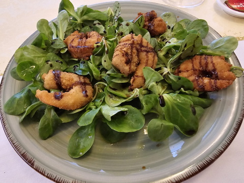 mazzancolle Fritte gebratene Krabben auf Feldsalat Balsamicobett |