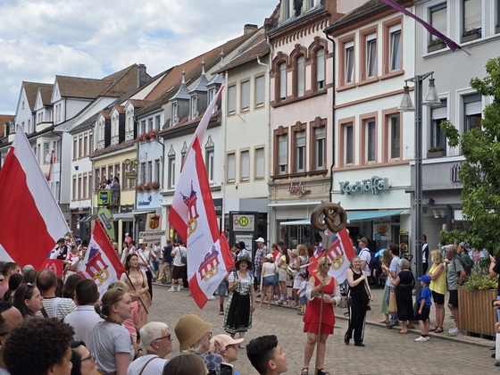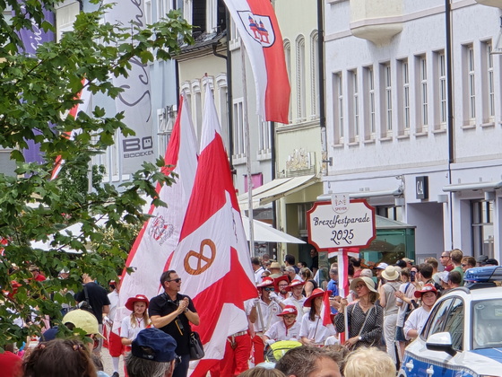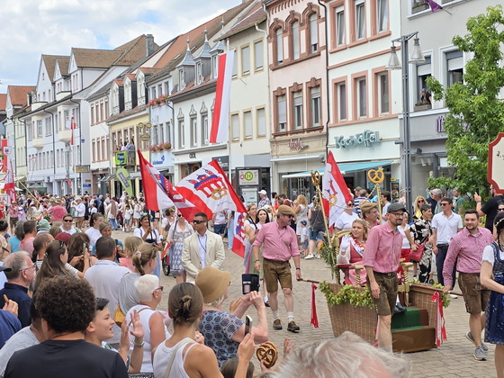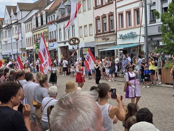 Der Brezelfestumzug in Speyer findet 2025 als "Brezelfestparade" statt, einer kompakteren Form des traditionellen Umzugs, ohne motorisierte Fahrzeuge. |