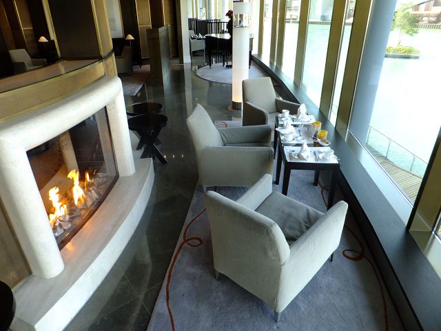 Ritz Carlton  Kamin mit Blick auf Werk VW Ritz Carlton stilvoll nächtigen vor der Fabrik VW  mit Aussenbad 29 C