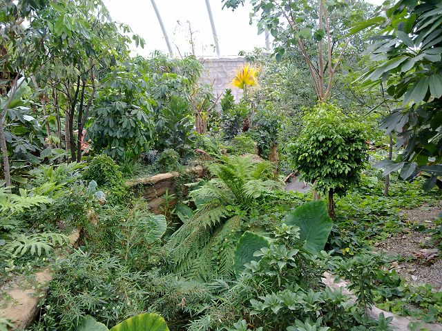 der üppige Regenwald mit Bäumen, Schlingpflanzen und dichtem Gebüsch