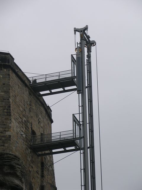 | Die Festung Königstein ist eine der größten Bergfestungen in Europa und liegt inmitten des Elbsandsteingebirges auf dem gleichnamigen Tafelberg oberhalb des Ortes Königstein am linken Ufer der Elbe . | Zuganlage für die Pferdefuhrwerke den steilen Hang hinauf |