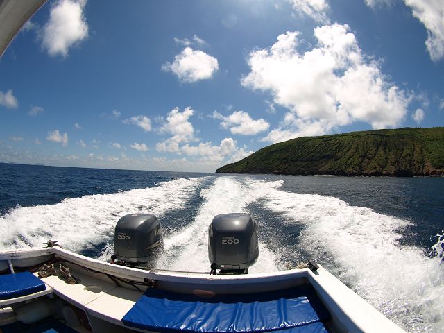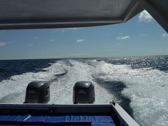 mit 400 Ps nach Floreana  Fahrt nach Floreana Schiff 400 Ps Aussenborder