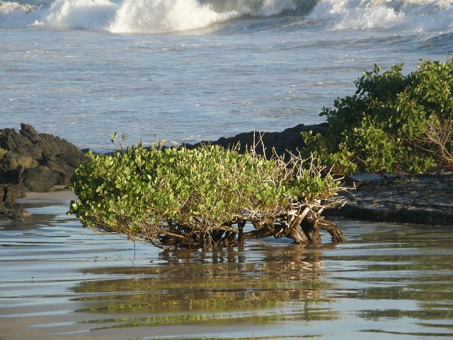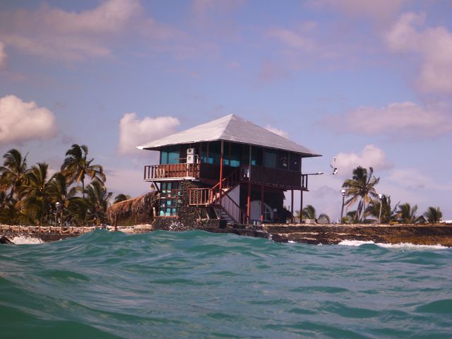 | Bucht vor dem Hotel auf Isabela mit Bar Iguana Bar | Fregattvogel |