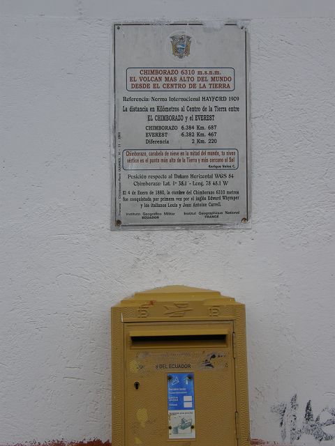 | Denk mal für die gefallenen Bergsteiger des Chimborazo | höchster gelegener Postkasten der Welt |