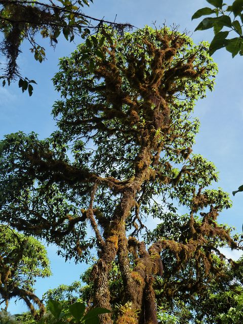 | escalesia pedunculata Die Zweige sind mit Epiphyten bewachsen | Scalesia Guayabillo Bäume Psidium galapageium Bryopteris liebmanniana, |