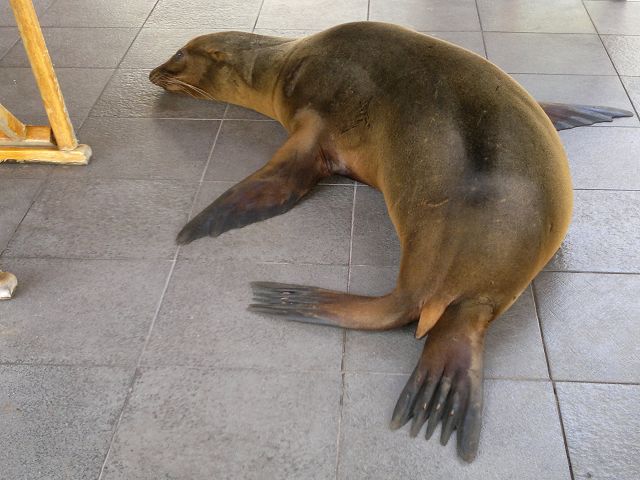 Robbe kommt als Tabledancer auf uns zu Robbe ist dann aber doch zu müde