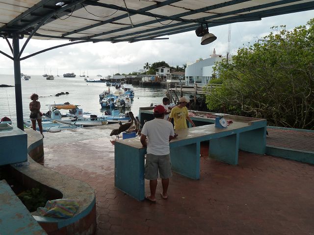 Fischmarkt in Puerto Ayora reste für die Pelikane