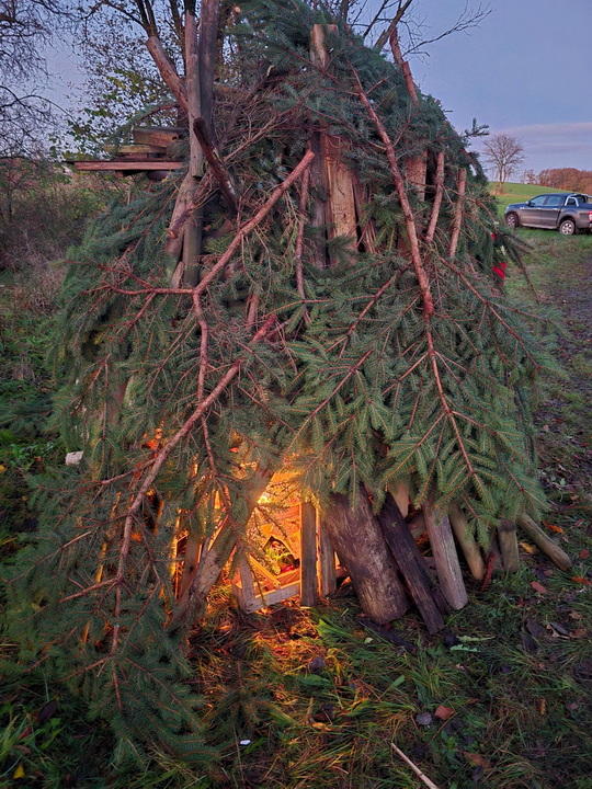 2 stes Treiben sülemicke Kessel Anfangs 2 Schnepfen und 2 Hasen und noch 1 Fuchs  entwischt , dann um 16.30 kam der spanende Teil eine Dicke Bach flüchtet aus dem Kessel Richtungs Stamms Haus hoch und lässt Ihre 10 Frischlinge von 15 kg im Ginsterdickicht zurück. Die blieben immer in der schützenden Ginsterdickung dann  mal flitzen 2 nach hinten ( nicht erwischt ) Die Durchgeschützen und Treiber bekamen die Frischlicnge nicht aus dem Ginsterdickicht raus. Die Ansage war mal 10 Minuten Hunde fest und dann wurden die Frischlinge nevös (war die Luft rein ?= .  Dann gelang es 1 Frischling zu fliehen aber seine Flucht wurde unterbrochen .