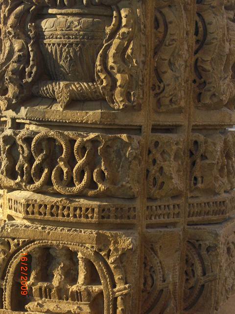 | Qutb Minar Sandsteinturm Höhe von 71 m. 15 m Durchmesser | Baubeginn ca 1200 und dann immer wieder erweitert bis ins 1500 |