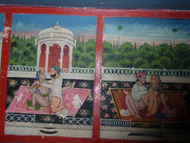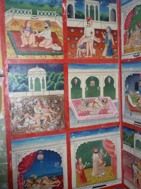 | Kamasutra Wandbilder hinter einer Holztüre | Kamasutrabilder |
