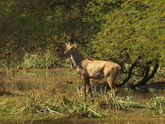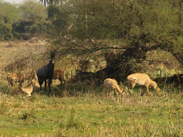 | Nilgauantilope männlich mit Hörnern bis ca 30 cm max bis 300 kg | Nilgau nur noch in Indien + Pakistan , früher auch in Afrika |