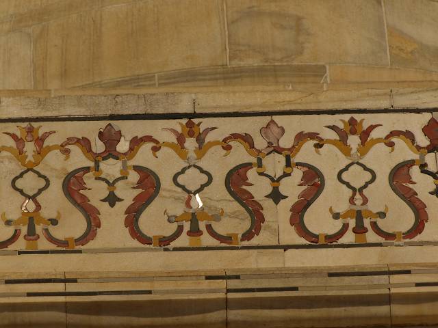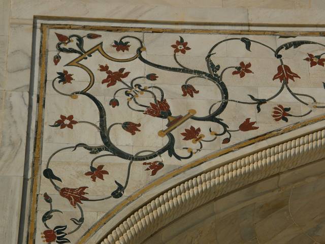 | Pietra-Dura-Sammlung der Welt ist in der Wiener Hofburg | Als Mogulkaiser Shah Jahan am Beginn des 17. Jh. das Taj-Mahal errichten ließ, waren es florentiner Steinschneider, die an der Gestaltung der üppigen Pietra-Dura-Fassade beteiligt waren . |