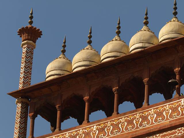 | Weißer Marmor schwarzer Schiefer gelber roter und grauer Sandstein als Verzierung | Pietra Dura Hauptbogen der Moschee die