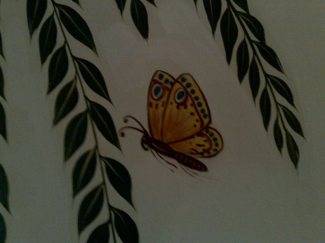bedroom of the suite, decorated with frescoes depicting the Hindu deity Krishna,