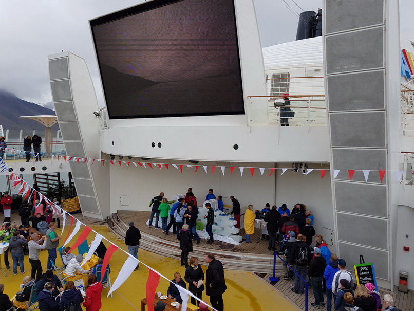 | Longyearbyen Svalbard Spitsbergen Spitsbergen Pilsner auf dem Pooldecke verkauf des Bieres der nördlichst gelegennen Brauerei der Welt | Longyearbyen Svalbard Spitsbergen Spitsbergen Pilsner Icecold Spitsbergen Pilsner on Ice |