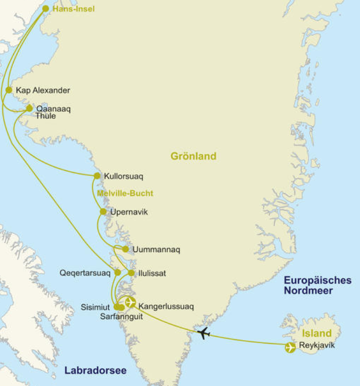 Kangerlussuaq 17-tägig inkl. Flug Premium-Schiff inkl. Vollpension und Getränkepaket zum Abendessen Thule - Knud Rasmussens Jagdstation |