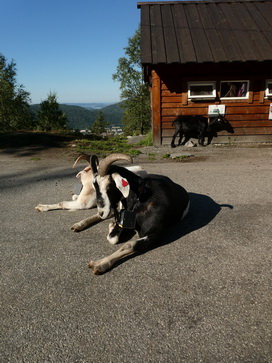 | Bergziegen Bergen Bergen Hausberg Fløyen Talstation Fløi-Bahn | Bergen Ziege auf Tisch |